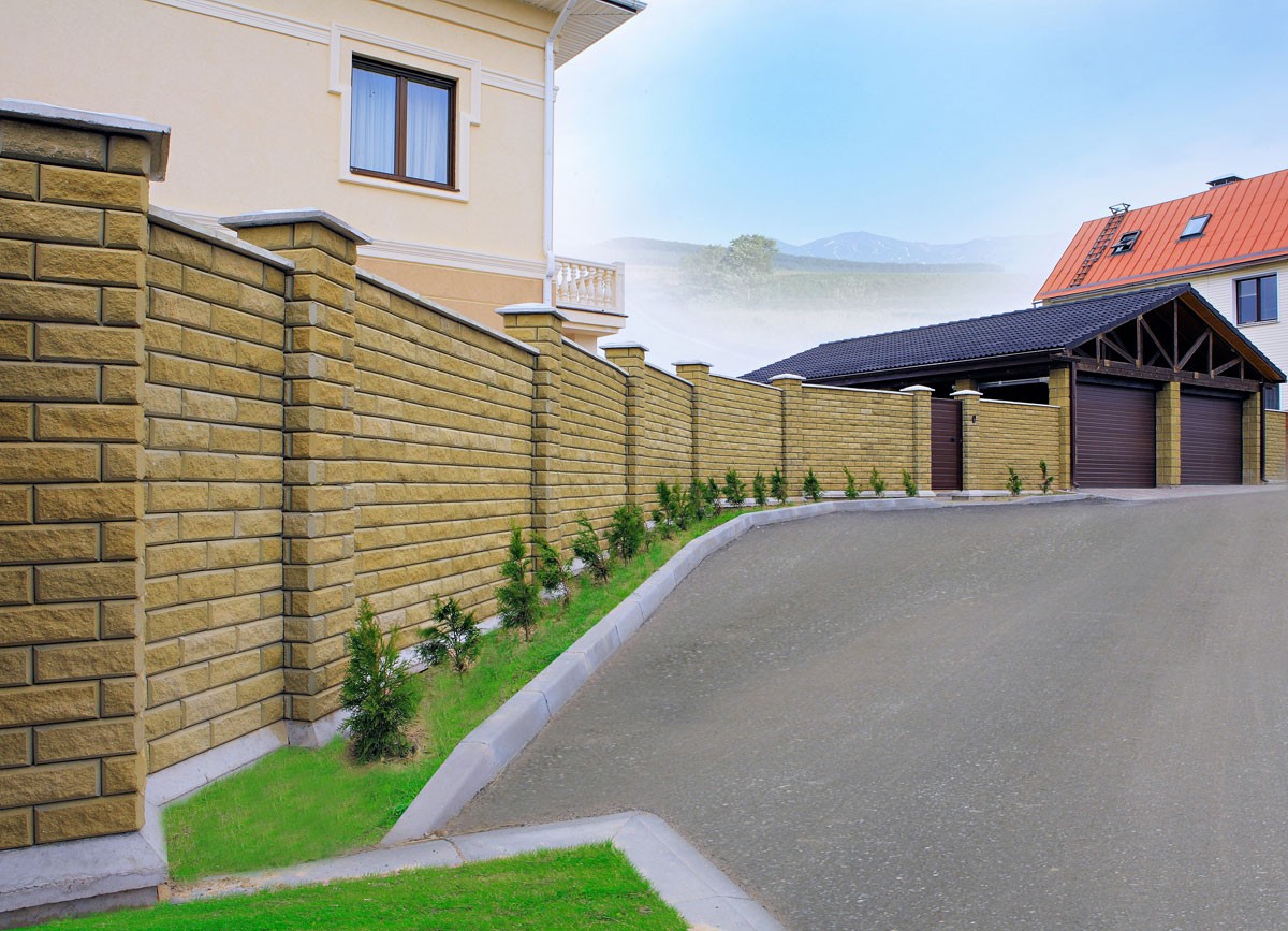 Фактура бетонных блоков «колотый камень» делает ваш забор одинаково привлекательным как во дворе так и снаружи. Это дает возможность сэкономить на стоимости забора, если договоритесь с соседом!